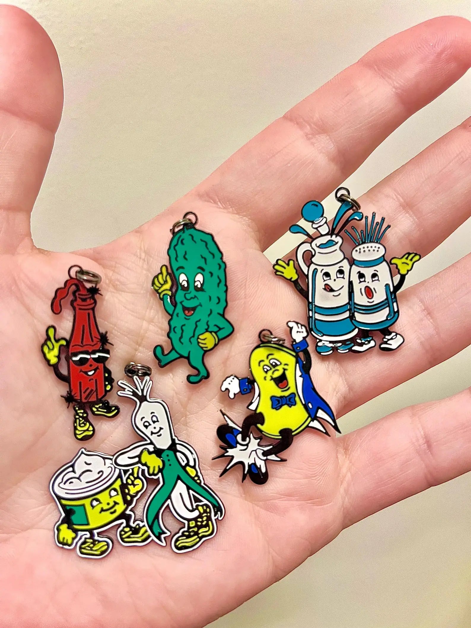 Stainless steel enamel pendant charm mystery box any two of five characters. Comes with 2 charms, black mini key-rings, and a matching chain.